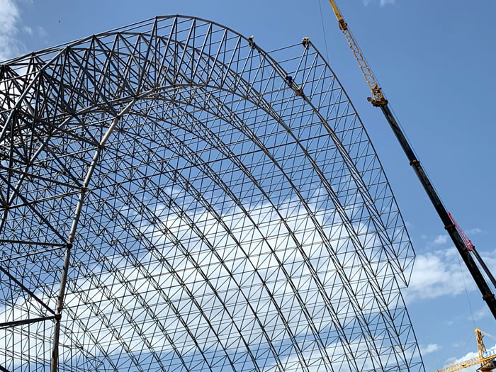 (2)网架加工前应对现场尺寸进行复测,确认无误后方可进行加工、安装;网架制作、运输、安装应遵守《空间网格结构技术规程》JGJ7-2010、《钢网架通州螺栓球节点》JG/T 10-2009、《钢网架通州螺栓球节点用高强度螺栓》 GB/T 16939-2016、《通州钢结构通州工程通州施工规范》 GB50755-2012、《通州钢结构通州工程通州施工质量验收标准》 GB50205-2020。